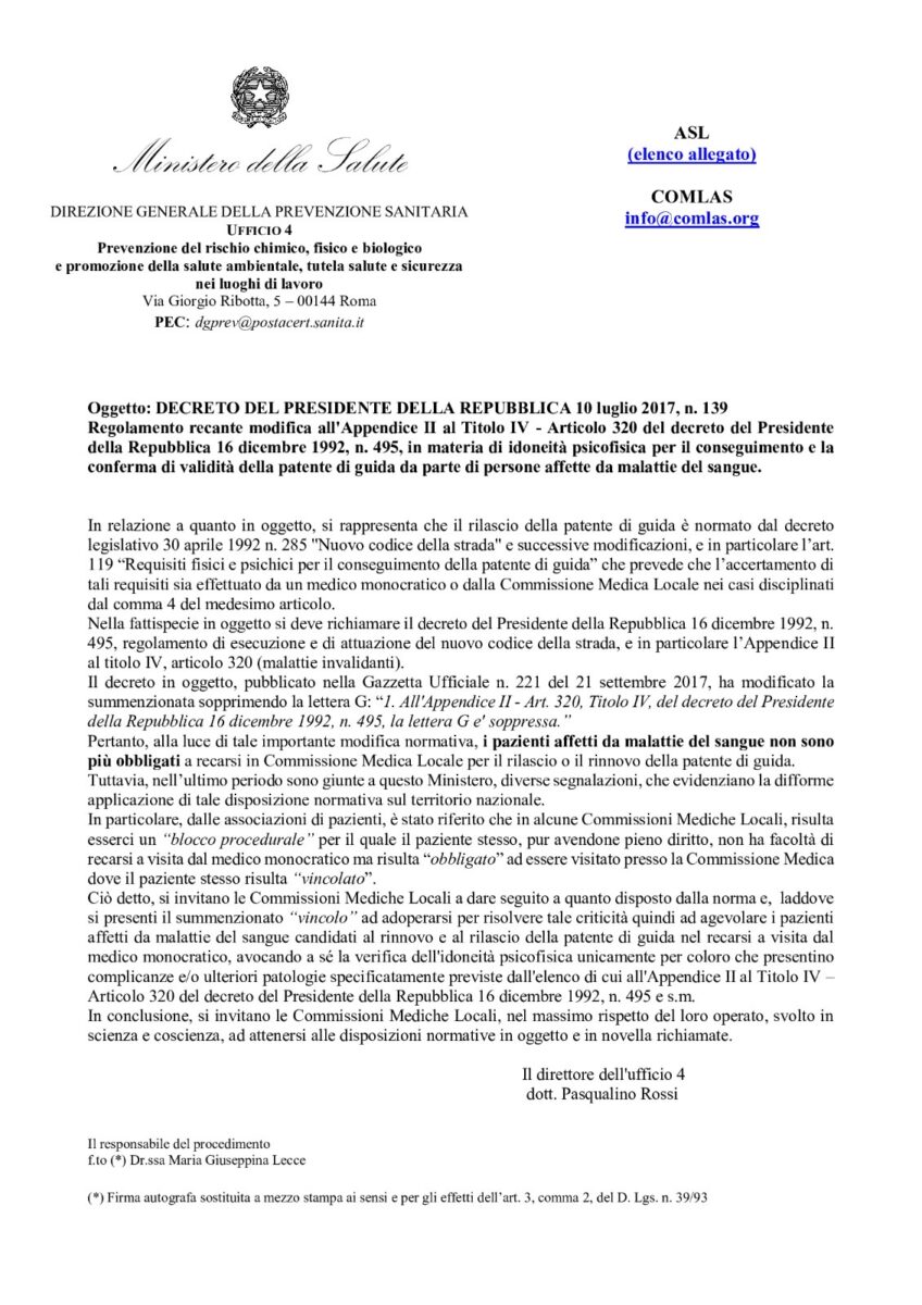 Pubblichiamo un’importante comunicazione rilasciata dal Ministero della Salute, atta a chiarire che “i pazienti affetti da malattie del sangue non sono più obbligati a recarsi in Commissione Medica Locale [...]